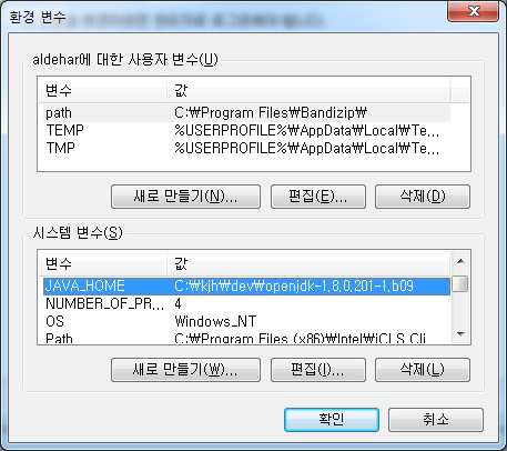 그러나, 저처럼 다른 사용자가 없는 경우나, 다른 사용자에게도 자바를 같이 사용하고 싶다 하는 경우, 시스템 변수에 등록합니다.